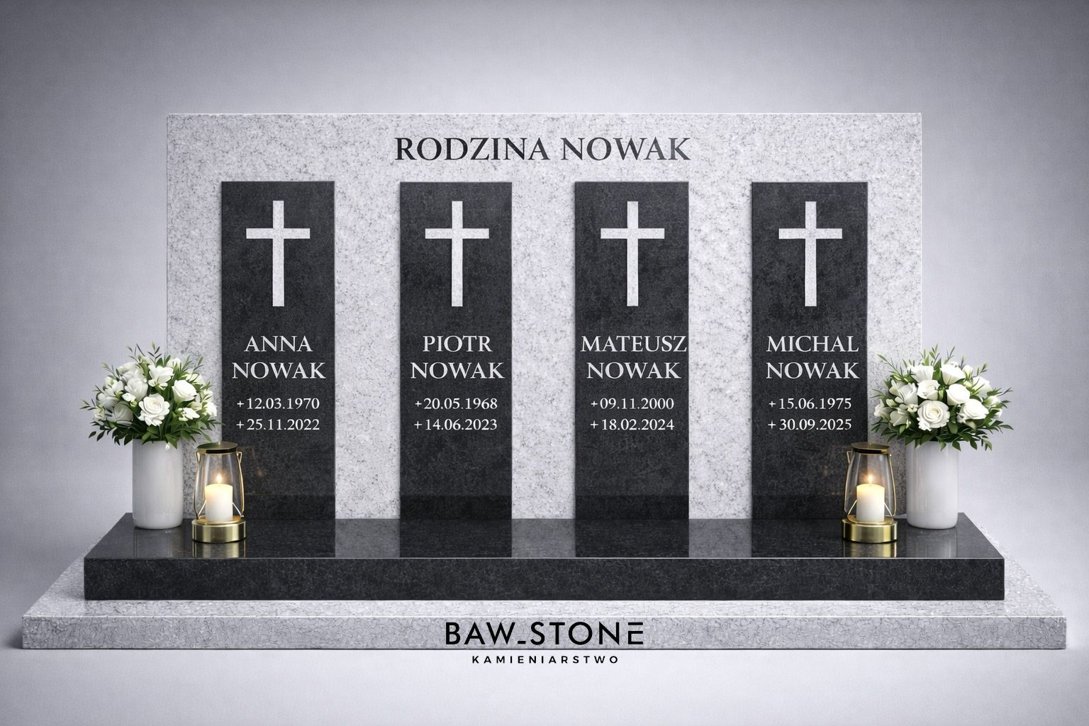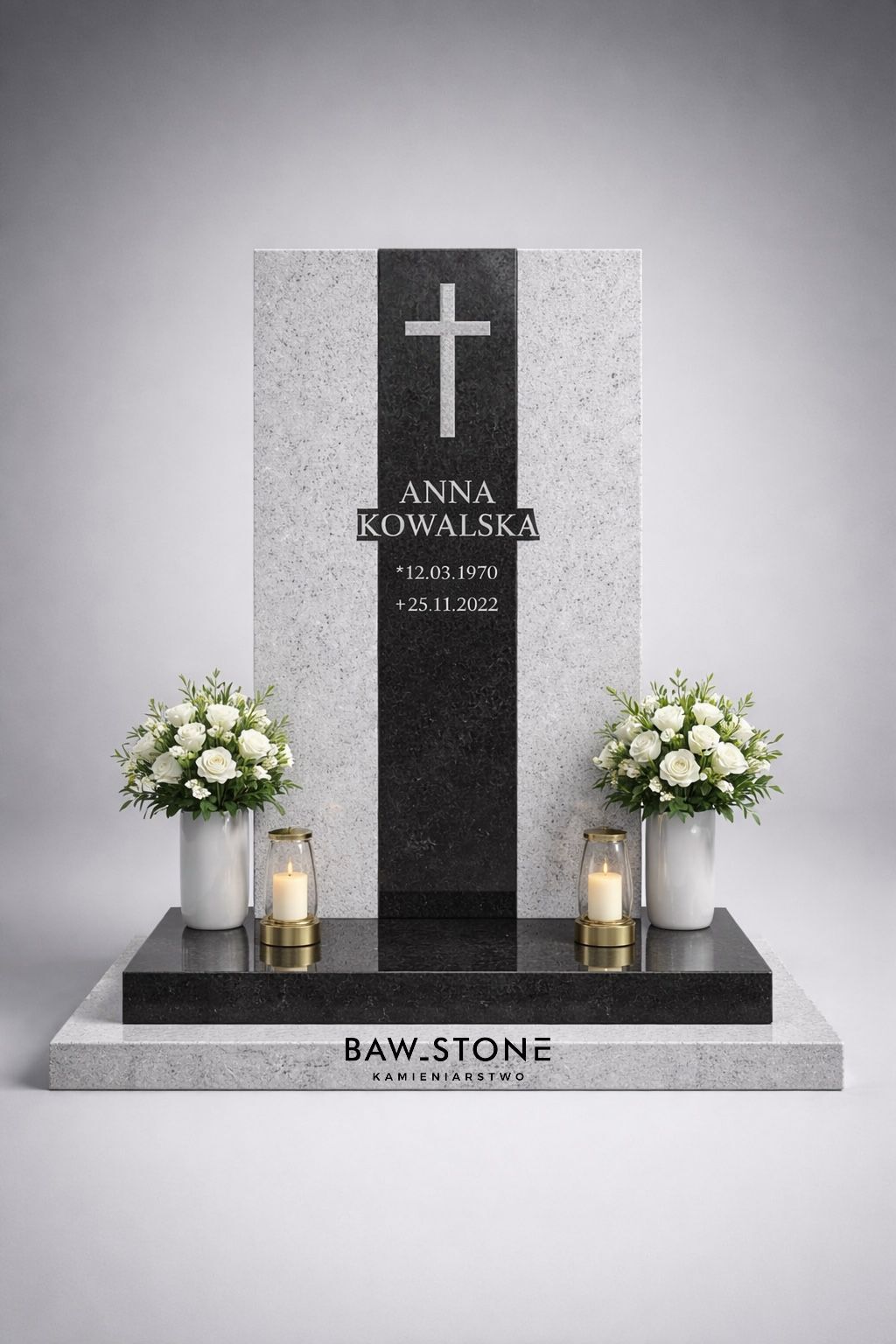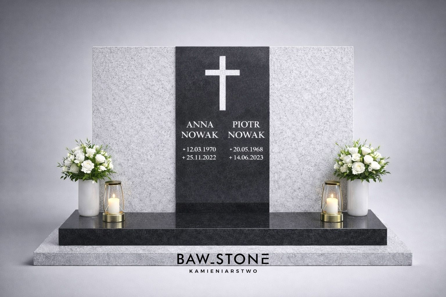 Kopiowanie, przetwarzanie i rozpowszechnianie w jakiejkolwiek formie bez pisemnej zgody (licencji) firmy Baw-Stone Kamieniarstwo ® grozi koniecznością rozbiórki nagrobka oraz odpowiedzialnością prawną i finansową, zarówno dla klienta, jak i dla wykonawcy.